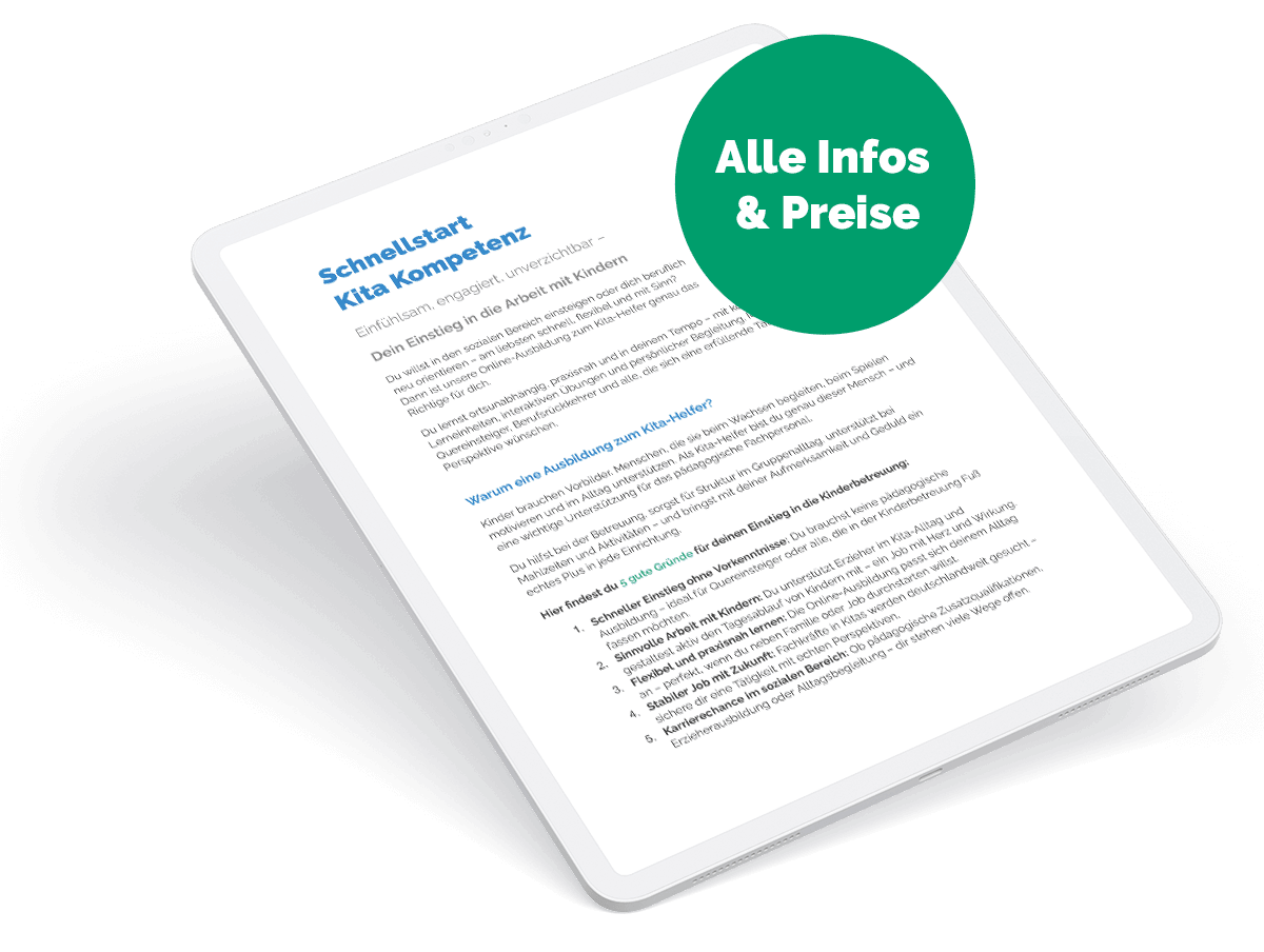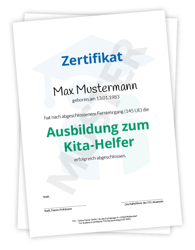 Nach erfolgreichem Abschluss der Online-Ausbildung erhältst du ein offizielles Zertifikat der Akademie für Kita-Kompetenz.